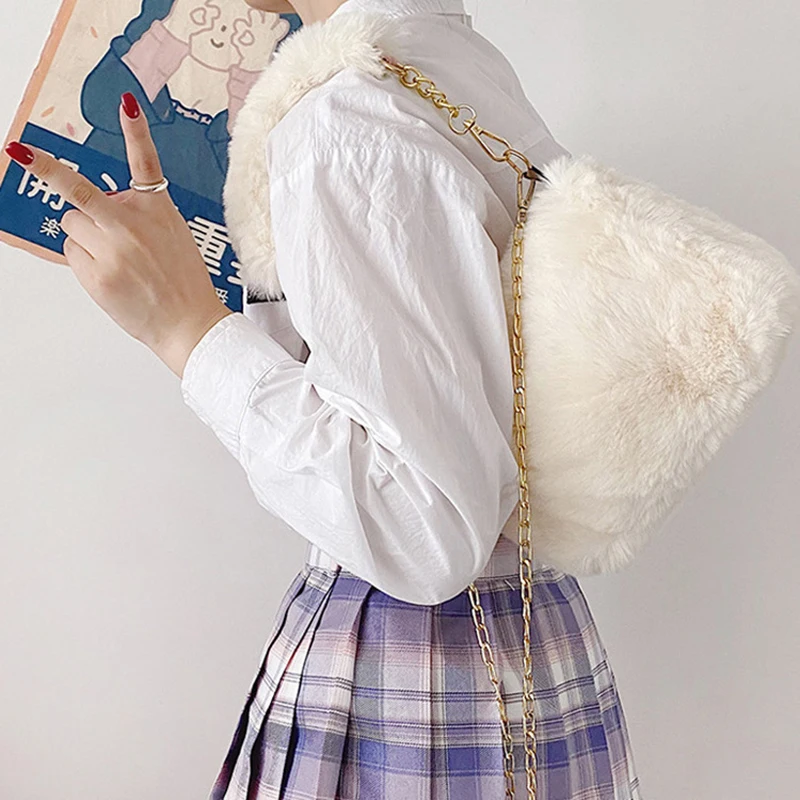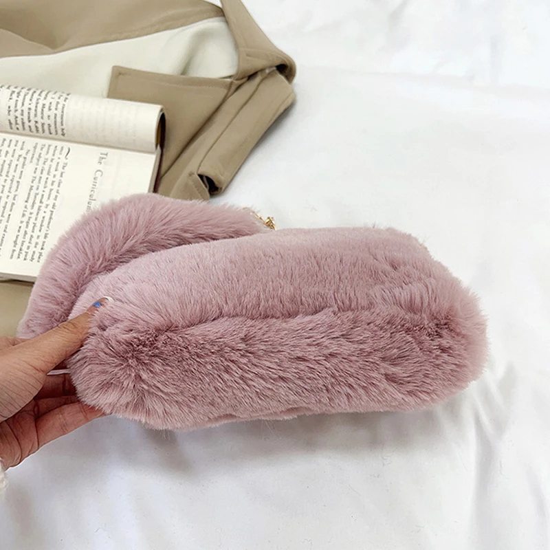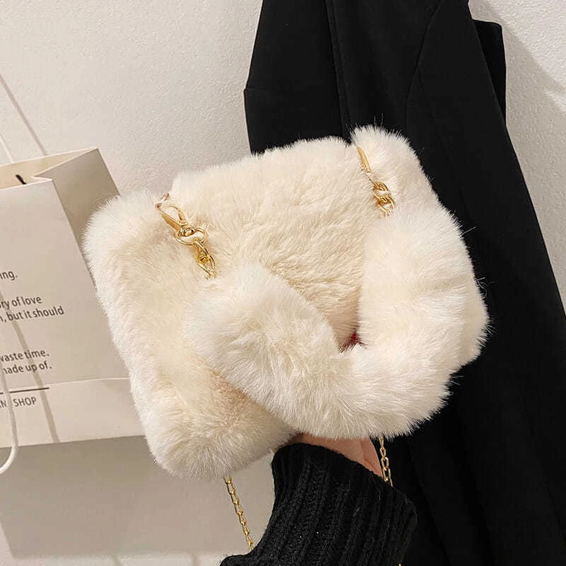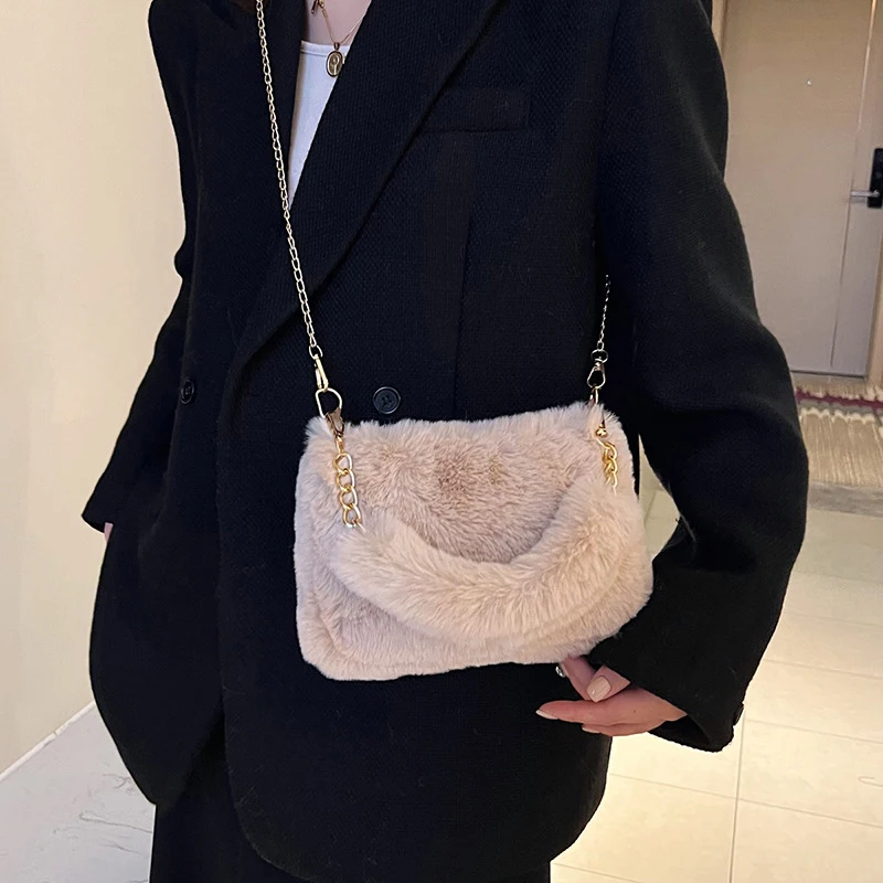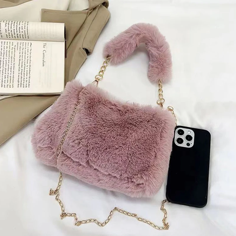 Autumn and Winter Plush Handbag Small Chain Crossbody Bag Fashion Square Faux Fur Shoulder Bag Fluffy Warm Shopper Totes