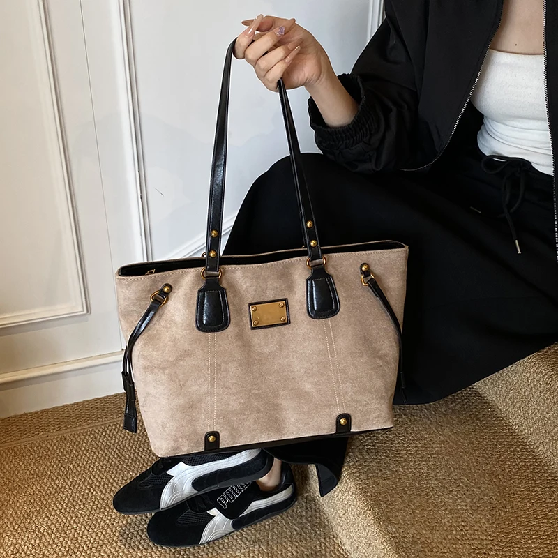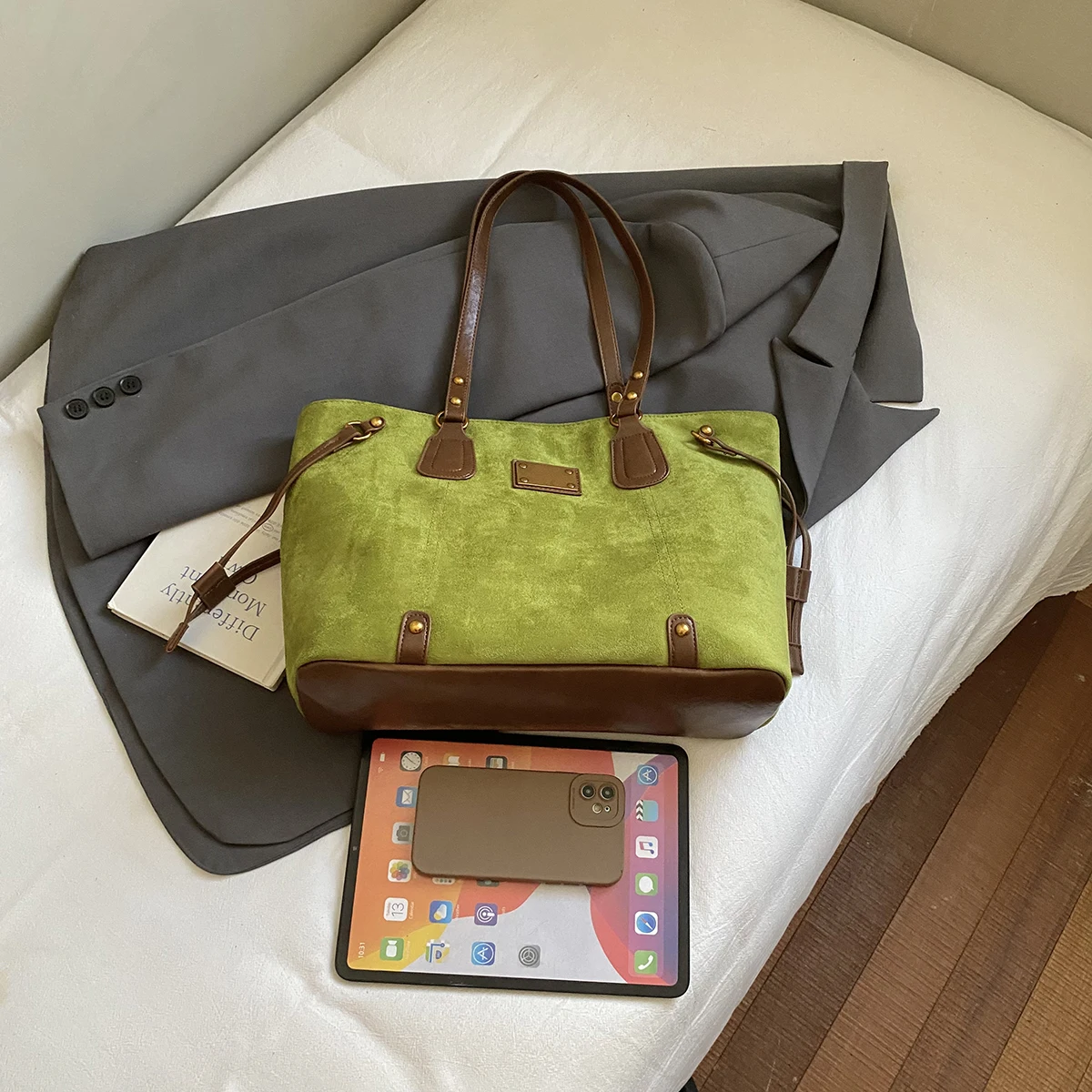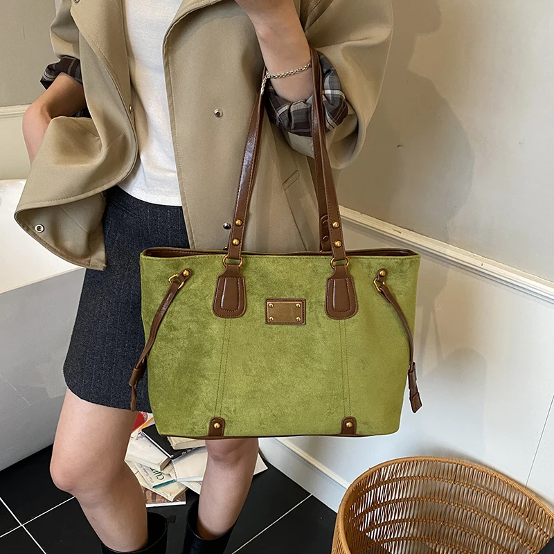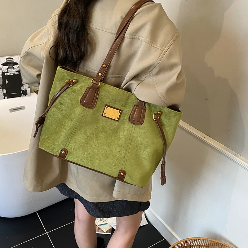 • LEFTSIDE Women PU Suede Shoulder Bag 2025 Winter Retro Soft Tote Bag Luxury Designer Trend Female High Capacity Green Handbags