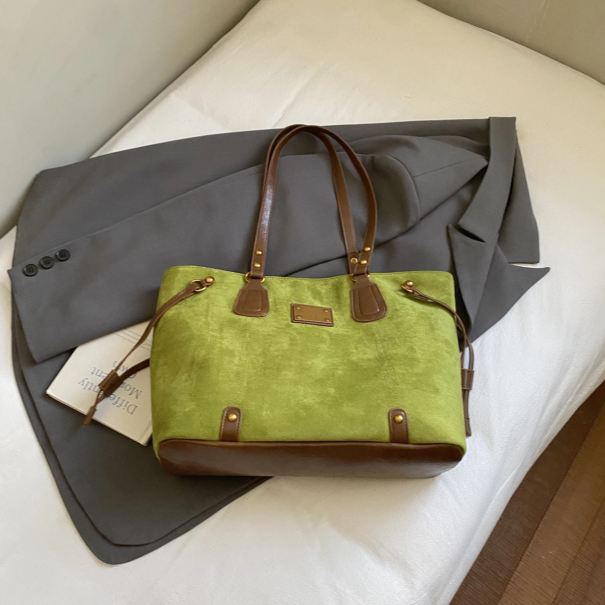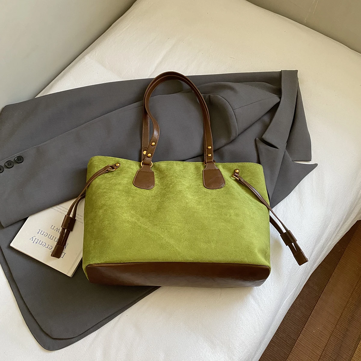 LEFTSIDE Women PU Suede Shoulder Bag 2025 Winter Retro Soft Tote Bag Luxury Designer Trend Female High Capacity Green Handbags