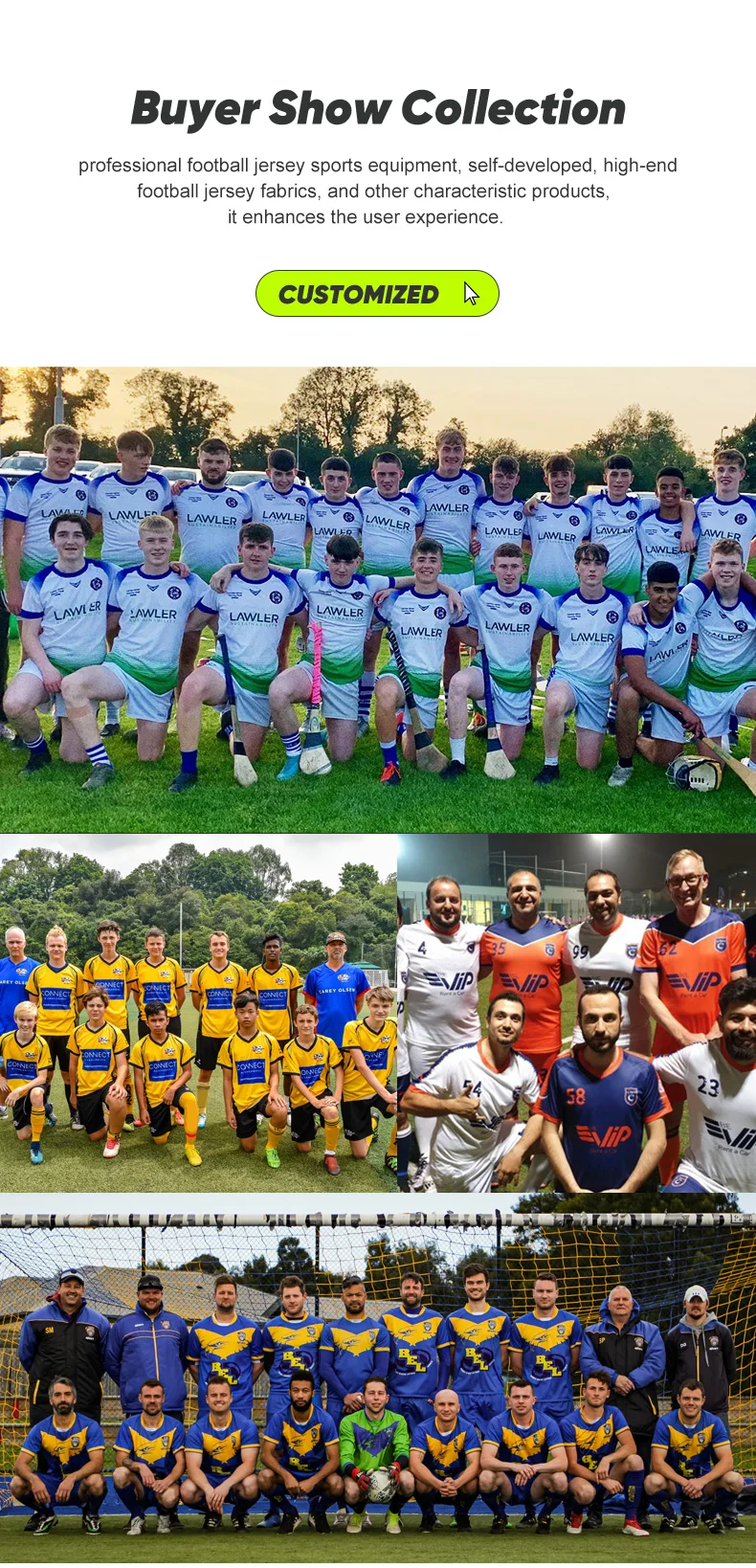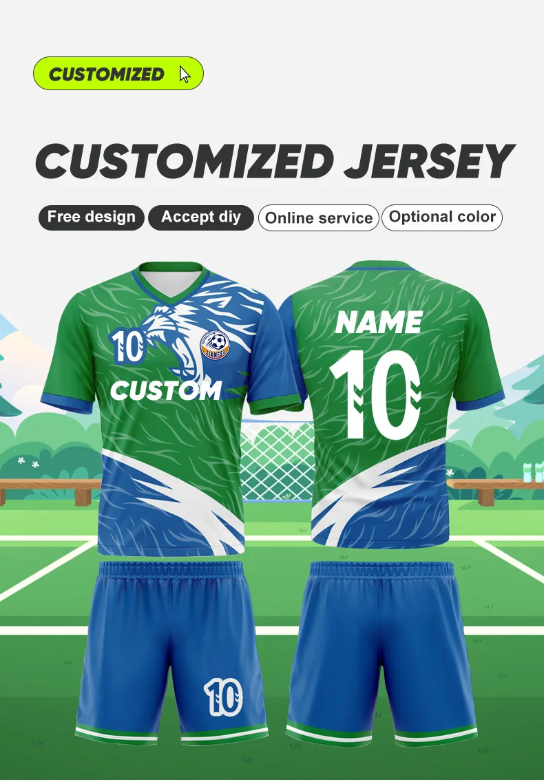 Specifications: Material: High-quality polyester blend Design and Style: Sublimation printing for vibrant, fade-resistant graphics Usage and Purpose: Ideal for soccer matches and training sessions Performance and Property: Quick-dry fabric ensures comfort and breathability Parts and Accessories: Includes a full uniform set, including jersey, shorts, and socks Typical Adaptive Scenario: Suitable for various weather conditions, from hot to cool Features: |Quick Dry Soccer Wear Uniforms| **Optimal Comfort and Performance** The Sublimation Soccer Uniforms Sets are engineered to provide peak performance and comfort for soccer enthusiasts. The high-quality polyester blend ensures durability and a soft touch, while the quick-dry fabric keeps players cool and dry during intense matches. The breathable fabric allows for unrestricted movement, enhancing agility and performance on the field. The full uniform set includes a jersey, shorts, and socks, ensuring a complete look for any soccer event. **Designed for Versatility** These customizable soccer uniforms are not just about style; they are designed for versatility. The sublimation printing technique offers a wide range of design possibilities, allowing players to personalize their uniforms with team logos, names, and numbers. Whether you're playing in the heat of the day or the chill of the night, the uniforms' adaptability ensures they are suitable for various weather conditions, making them a go-to choice for soccer teams and players alike. **For Every Player, Every Game** The Sublimation Soccer Uniforms Sets are crafted to cater to the needs of every soccer player, from the casual enthusiast to the competitive athlete. The high-quality materials and attention to detail make these uniforms a reliable choice for both amateur and professional soccer players. The breathable fabric and quick-dry properties ensure that players can focus on their game without being hindered by discomfort. Whether you're playing a friendly match or competing in a tournament, these uniforms are designed to elevate your performance and make you stand out on the field.